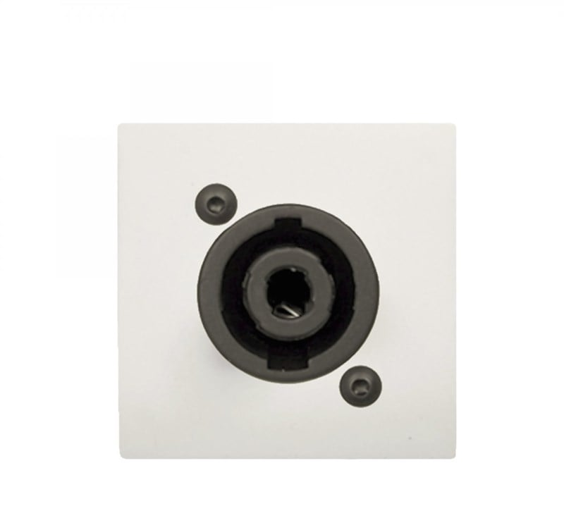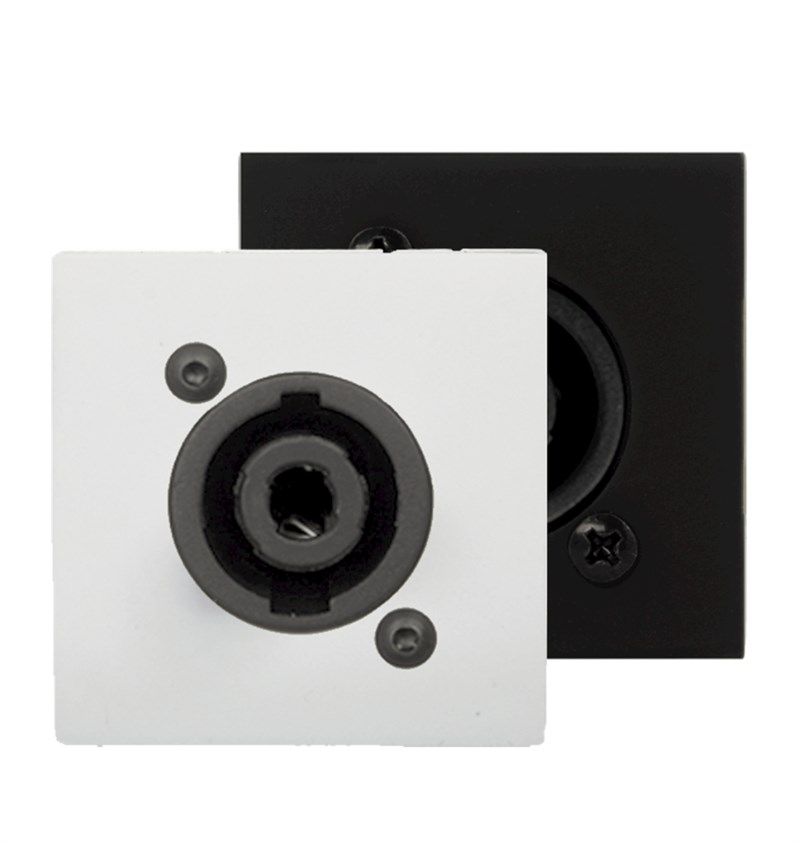 Connection plate with Neutrik Speakon connector, designed to be used with bTicino installation materials. Available in Black (/B) & White (/W). (Mounting frame and cover plate not included)