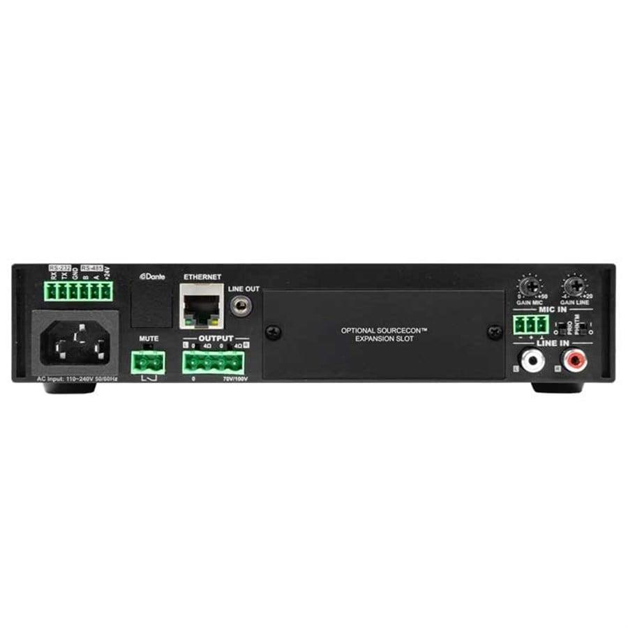 Maksimum 2 x 80 Watt gücündeki düşük empedanslı stereo sistemlere güç sağlamak için kullanılabilirken, maksimum 160 Watt çıkış gücüyle sabit bir voltaja (100V ve 70V) köprüleme mümkündür. Anahtarlamalı bir güç kaynağı, küresel uyumluluk için çok çeşitli ana voltajlara izin verir.