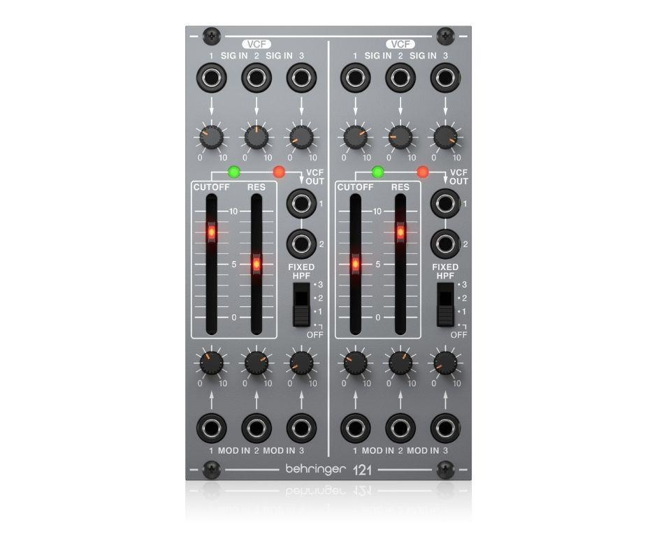 Behringer 121 DUAL VCF, iki adet bağımsız low pass filtre içerir. Her filtre; cutoff frekansı ve resonance kontrolleri ile donatılmıştır. Resonance ayarı sayesinde filtre frekanslarını vurgulayabilir, keskin ve karakterli tonlar elde edebilirsiniz.