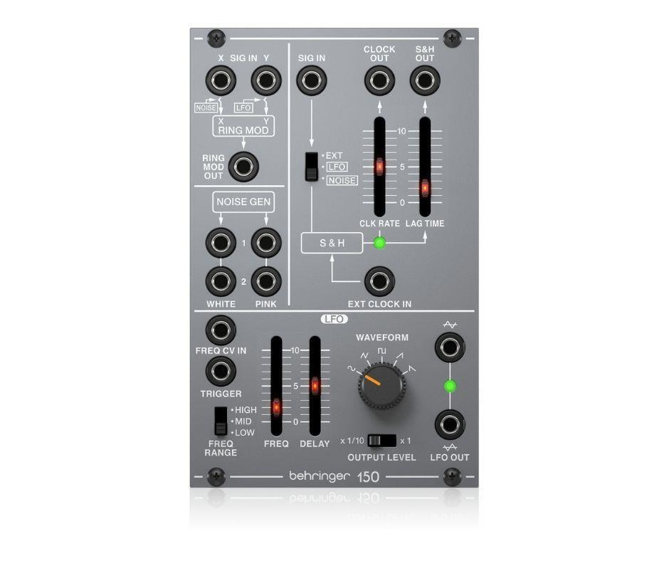 Behringer 150, eş zamanlı çalışan iki Noise Generator sunar ve White Noise ile Pink Noise kaynaklarını aynı anda üretir. LFO bölümü ise sine, triangle, square, ramp ve saw tooth olmak üzere 5 farklı dalga formuna sahiptir. Geniş frekans aralığı, delay kontrolleri, harici CV girişi ve klavyeye phase lock özelliği ile son derece esnek bir kontrol sağlar. Ayrıca modül üzerinde iki adet eş zamanlı LFO bulunur.
