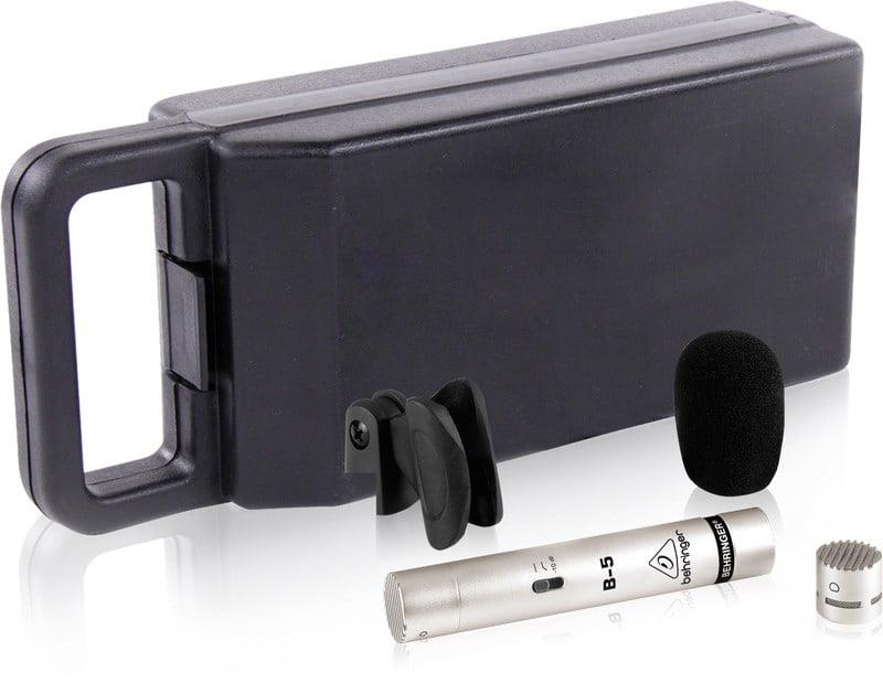 B-5 The single-diaphragm B-5 microphone is a home recording enthusiast’s dream come true! The B-5 comes with interchangeable cardioid and omnidirectional capsules, making it a fantastic all-purpose condenser microphone. It is designed to capture your sounds with incredible realism, sensitivity and accuracy, and is perfect for acoustic instruments, vocals and overhead miking – and rugged enough to go the distance! With a heavy duty suspension mount and windscreen included in the sleek aluminum case, the B-5 just may be the only microphone your studio will need.