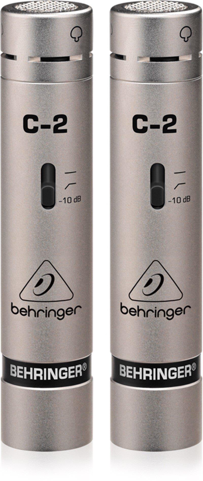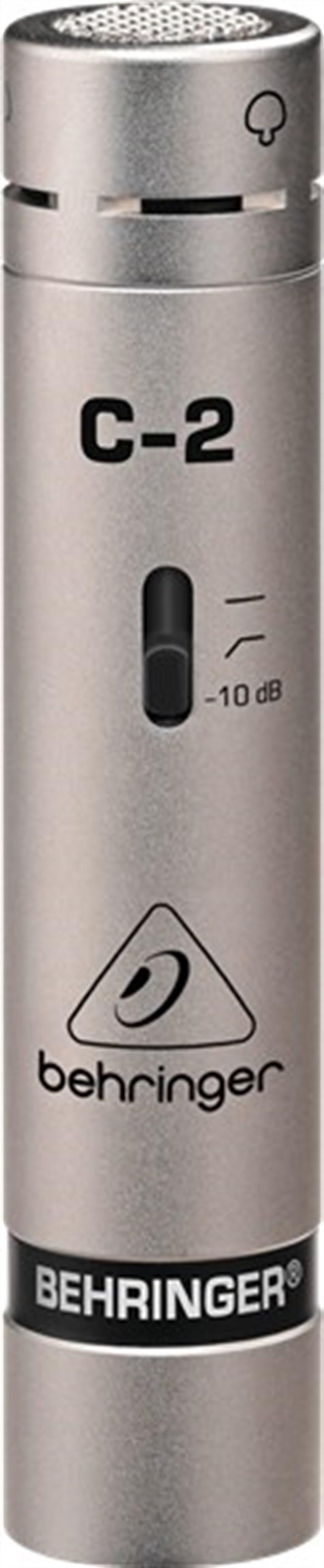 Sound That Astounds Once connected to your sound system, you’ll notice these twin pro-caliber microphones have exceptionally-flat frequency response (an average boost of 4 dB between 1 kHz- 8 kHz). For those of you new to condenser mics, this basically means you’ll get a slightly brighter sound, that will give the perfect shape to cymbals and overhead miking. Acoustic pianos and choirs will also benefit greatly from this frequency response. The cardioid pickup pattern provides unparalleled sound source separation and feedback rejection. C-2 mics contain ultra low-noise transformerless FET input circuitry that can handle extreme dynamics (from 20 Hz to 20 kHz) and have a maximum sound pressure level of 150 dB. C-2 mics also feature a switchable low-frequency rolloff to eliminate infrasonics (mic handling and wind noise), as well as a switchable 10 dB input attenuation to accommodate for hot signals, such as a really loud vocalist – or overzealous cellist. When it comes to capturing amazing sound, nothing in this class comes close to the C-2 for sonic accuracy, versatility and affordability! Pick up a pair of C-2s today at your authorized Behringer dealer, or order online.