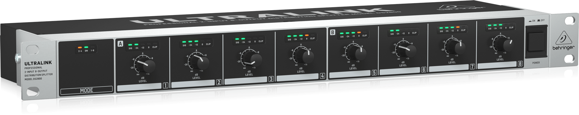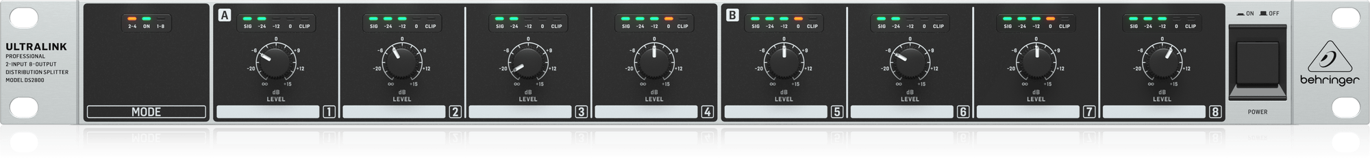 Behringer DS2800, ticari ses sistemlerinde maksimum esneklik ve profesyonel sinyal dağıtımı sunan, 2 girişli 8 çıkışlı bir dağıtım splitteridir. 2-In/4-Out veya 1-In/8-Out çalışma modlarıyla, hem stüdyo uygulamalarında hem de mağaza, restoran, AV kurulumları gibi çok bölmeli sistemlerde üstün performans sağlar.