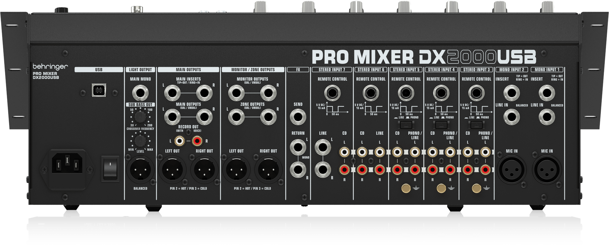 Toplamda 5 çift stereo ve 2 mono mic/line girişe sahip DX2000USB, ultra düşük gürültülü ULN preamfilerle donatılmıştır. Talkover özelliği, otomatik olarak müzik seviyesini düşürerek anonslar sırasında netlik sağlar. Ek olarak Subbass çıkışı, zone çıkışları, efekt döngüsü ve ayarlanabilir crossfader eğrisi gibi gelişmiş özelliklerle sahnede veya stüdyoda maksimum kontrol sağlar.