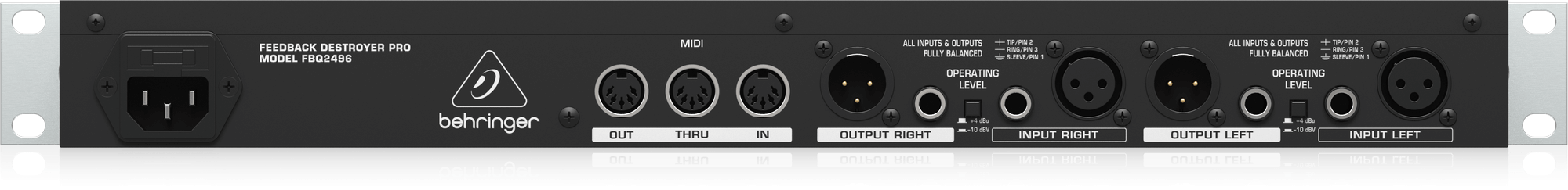 Dijital sinyal işleme (DSP) teknolojisi, MIDI kontrol seçenekleri, kullanıcı hafızaları ve altın uçlu XLR/TRS bağlantıları ile gelişmiş sistem entegrasyonu sunar. İçerdiği switch-mode güç kaynağı sayesinde 100–240V arası gerilimle her yerde sorunsuz çalışır. FBQ2496, konser salonları, canlı performans sahneleri, toplantı salonları ve sabit ses sistemleri için vazgeçilmez bir geri besleme önleme ve ton şekillendirme cihazıdır.