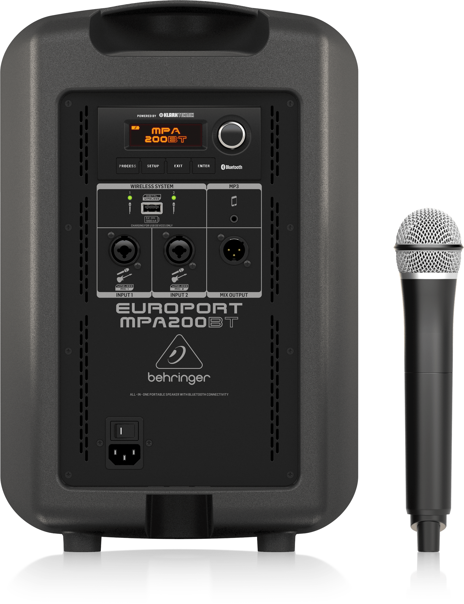 Bluetooth Bağlantılı, Kablosuz Mikrofonlu ve Şarj Edilebilir Bataryalı Hepsi Bir Arada Taşınabilir PA Sistemi Behringer MPA200BT 200W Taşınabilir Hoparlör, en uygun fiyat ve 24 ay garanti güvencesiyle Medu Müzik Market'te.