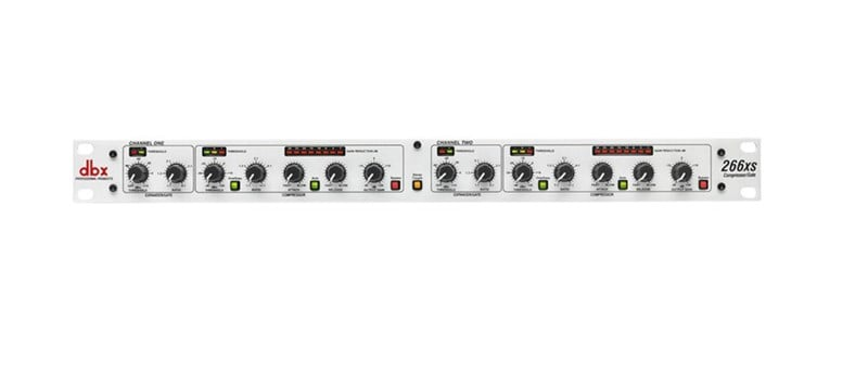 dbx knows compressors...after all we invented them! The 266xs is the latest in a long line of the world's most successful compressors from the inventors of the technology. Its patented Overeasy® compression technology provides smooth and musical performance while the AutoDynamic™ attack and release controls, found only on dbx compressors, puts great sound within easy reach. The 266xs can operate in stereo or dual-mono modes, has true RMS power summing and features quality XLR and 1/4" TRS inputs and outputs. It cuts no corners on visual feedback with gain reduction metering and easy-to-read backlit switches.