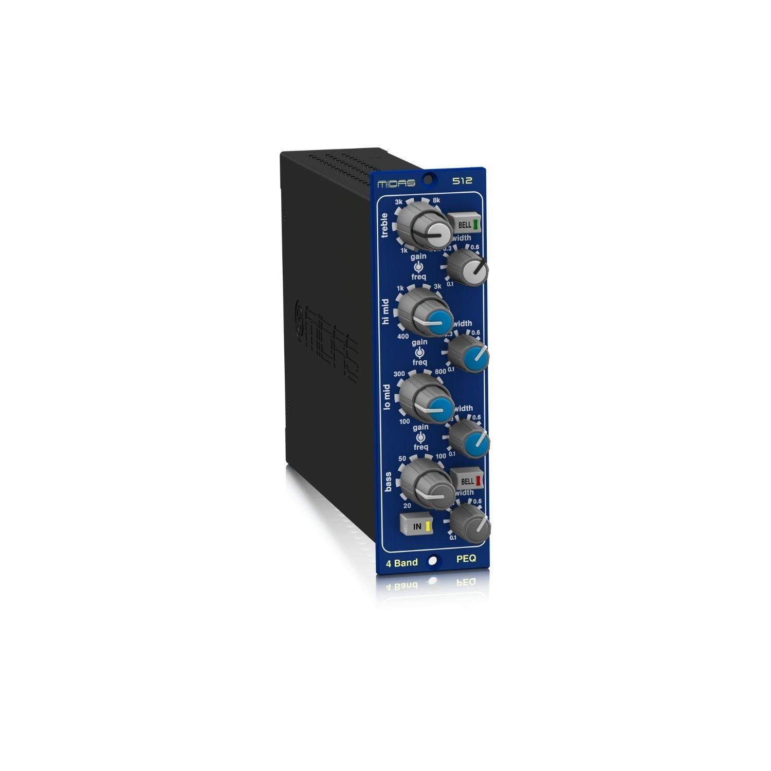 Midas 512 V2, efsanevi Midas Heritage 3000 mikser kanal şeridine dayanan, 500 Series uyumlu kompakt bir 4 bant tam parametric equalizer modülüdür. Sıcak, organik ve son derece hassas ses karakteriyle tanınan Midas EQ geleneğini modern formatta sunar. Hem stüdyo hem de canlı performans ortamlarında müzikalite, detaylı frekans kontrolü ve üstün ses kalitesi arayan profesyoneller için tasarlanmıştır.